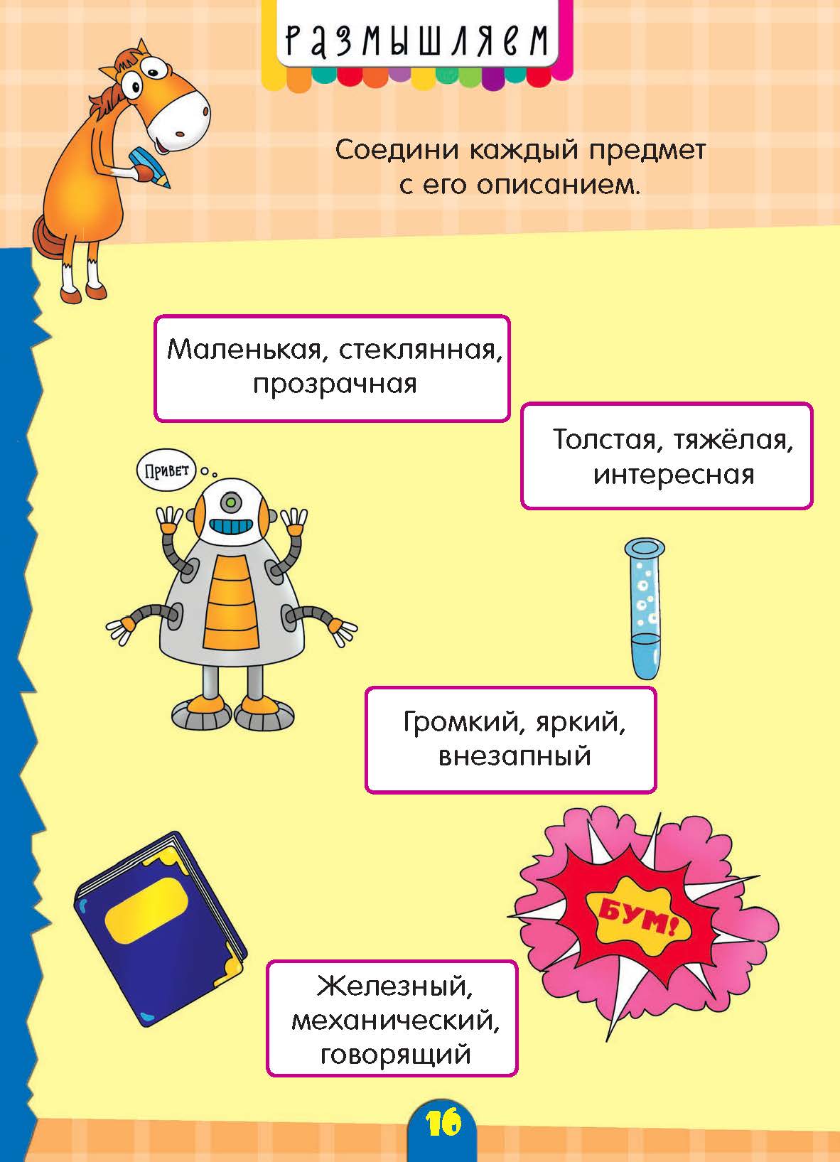 Итак, правила: загадываете предмет и говорить три его характеристики. Например, громкий, яркий, внезапный. Что это? Ребёнок должен дать свой ответ. Потом меняйтесь местами. Малыш – загадывает, а вы – отгадываете. Такой тип игры отлично развивает логику, находчивость и увеличивает словарный запас. А главное, помогает провести время вместе весело! Потренируйтесь теперь на наших заданиях.